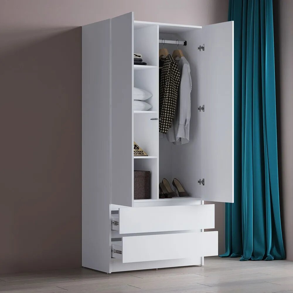 Шкаф для одежды распашной двухдверный Квазар с 3 ящиками ШК-039 220*90*50 Белый 14 617 ₽