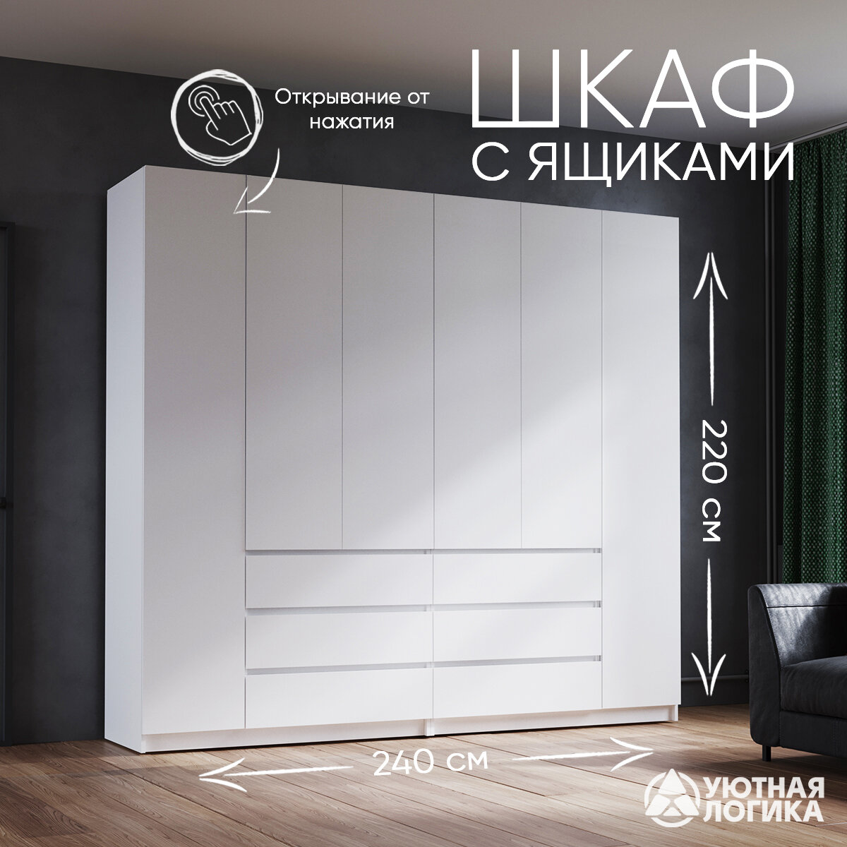 Шкаф распашной для одежды Квазар ШК-0303 240 см, Белый, с полками и ящиками информация: