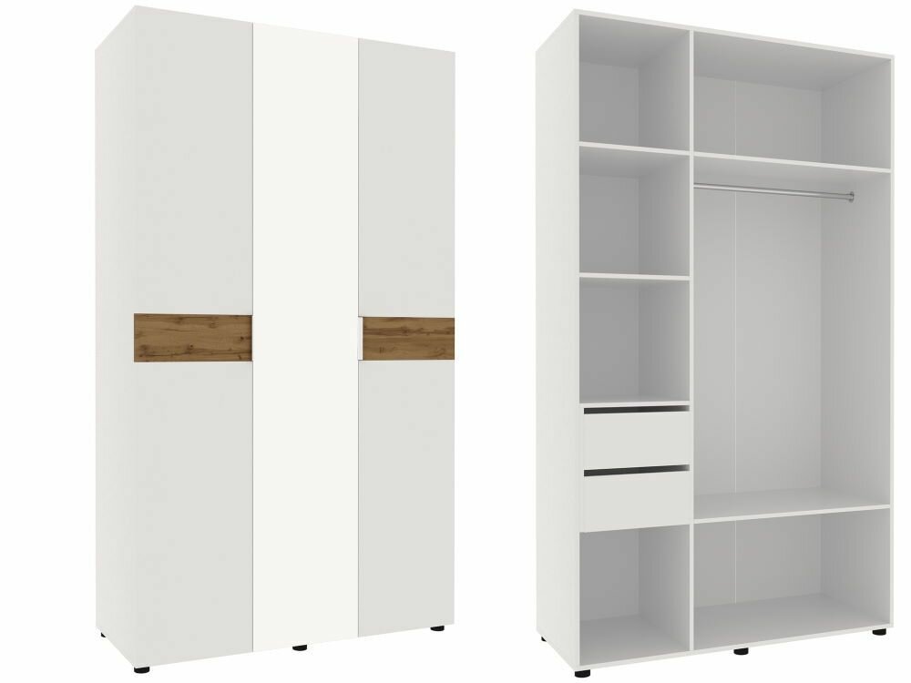 10 цен на Шкаф распашной трехдверный Риальто SK1200 Белый/Дуб вотан, ЛДСП, с ящиками, штангами, зеркалом, 1200х2080х490 ГРОС