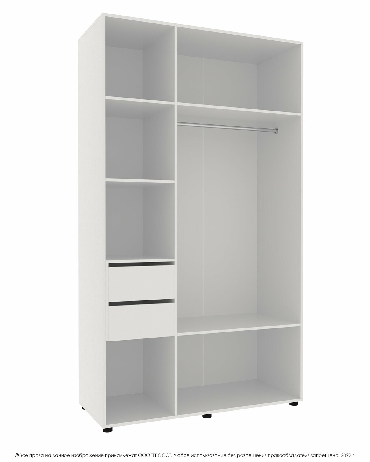 Шкаф для одежды распашной Нонтон Луас, 120 см, 7 полок и штанга, белый глянец