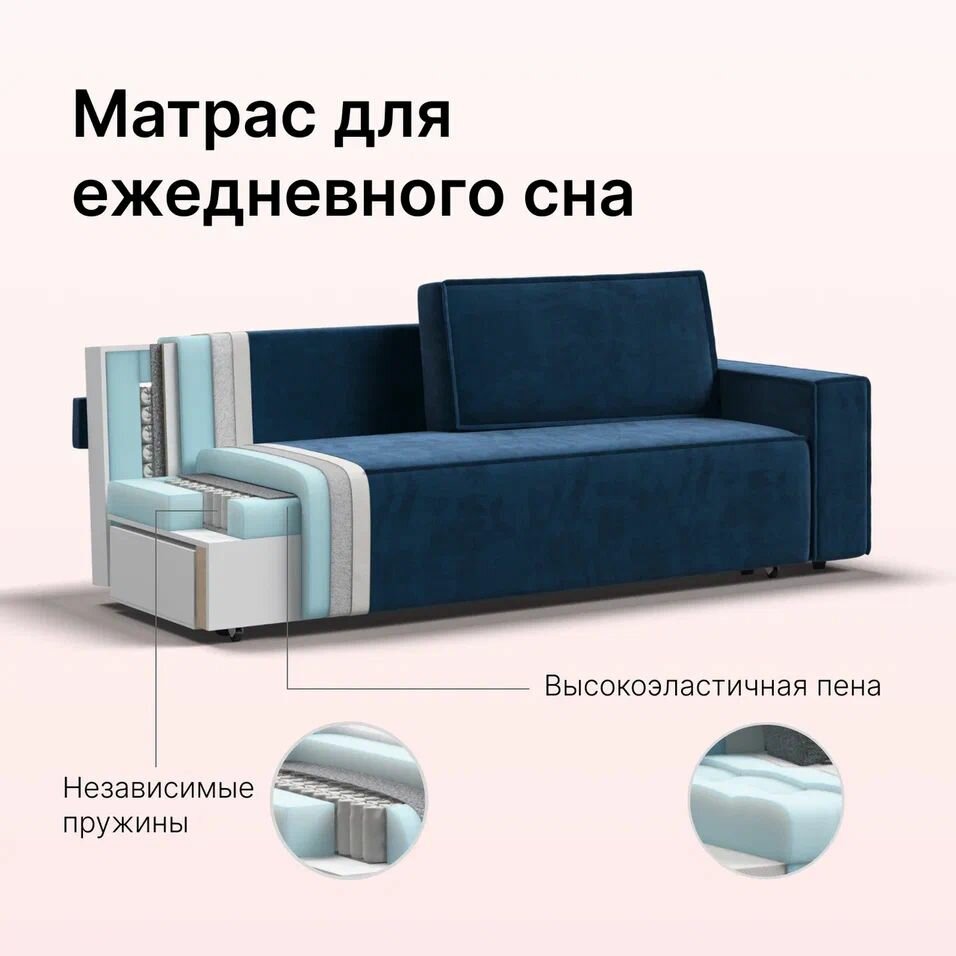 Отзывы на Диван-кровать с ящиками для хранения NORD 2.0 Много Мебели, еврокнижка, велюр Monolit синий, 240х101х82 см