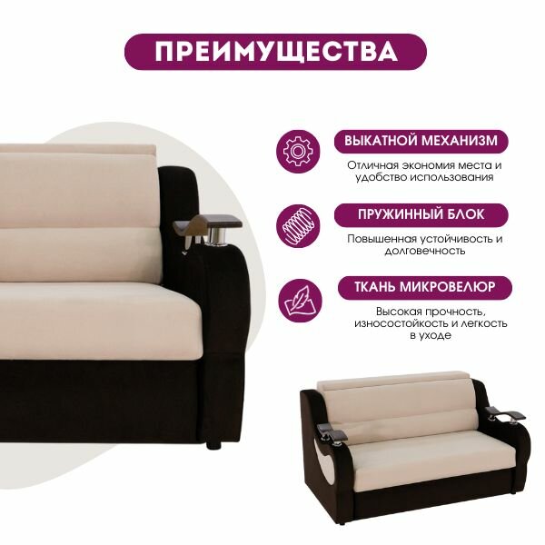 Выкатной диван-кровать прямой Рим бежево-коричневый микровелюр + рогожка с ящиком для хранения (сп. м. 140 см х 195 см) 23 990 ₽