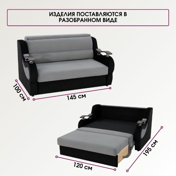 Отзывы на Диван-кровать прямой раскладной выкатной Рим серо-черный с ящиком для белья (сп. м. 120 см х 195 см)