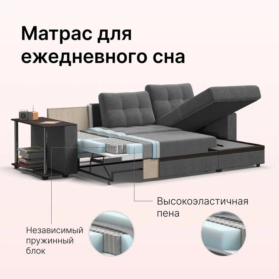10 цен на Угловой диван-кровать Атланта НПБ, с ящиком для хранения, механизм дельфин, рогожка Malmo серый, 250х160х92 см