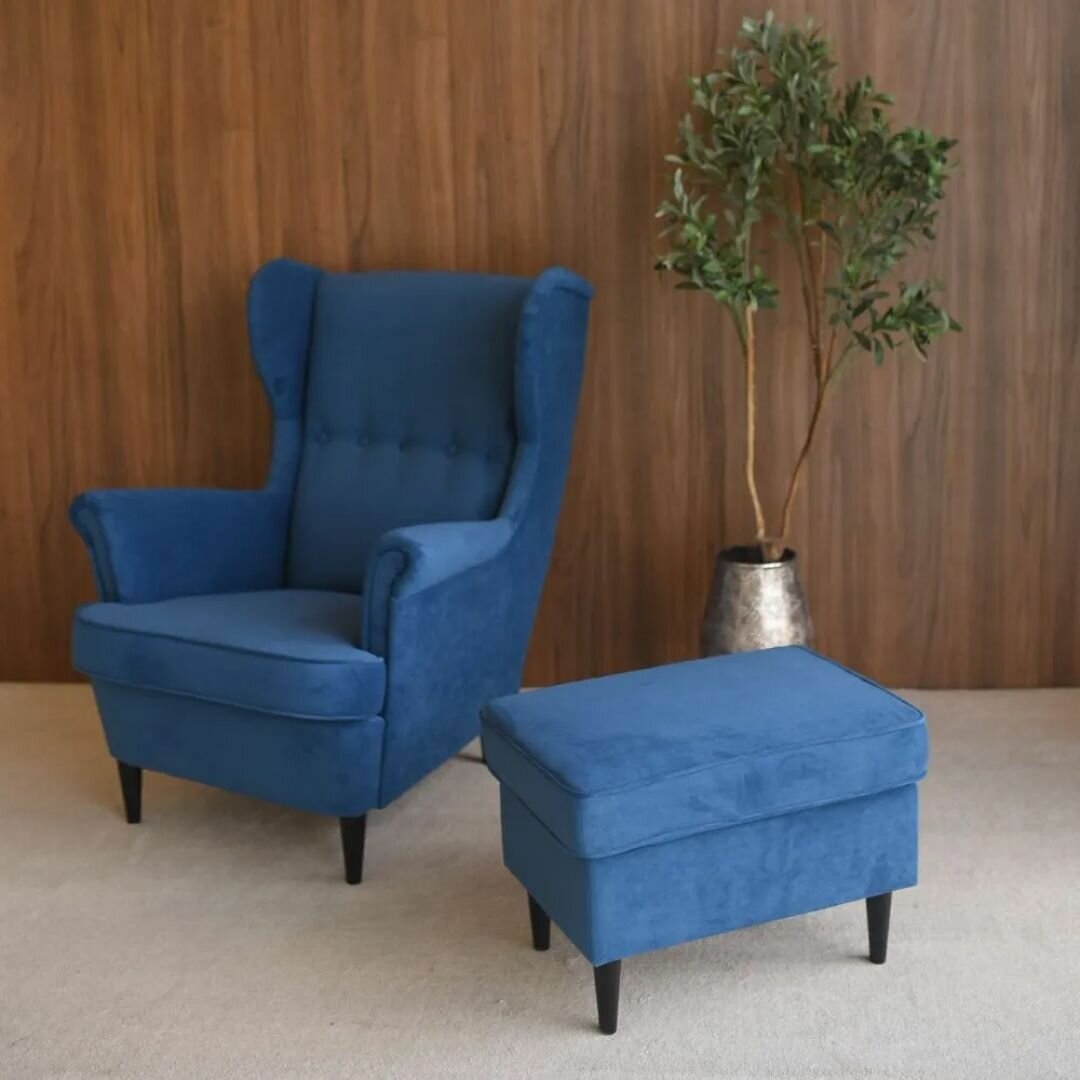Комплект мебели кресло + пуфик СТРЭНД (STRANDMON) ULTRA MIDNIGHT, велюр, тёмно-синий информация: