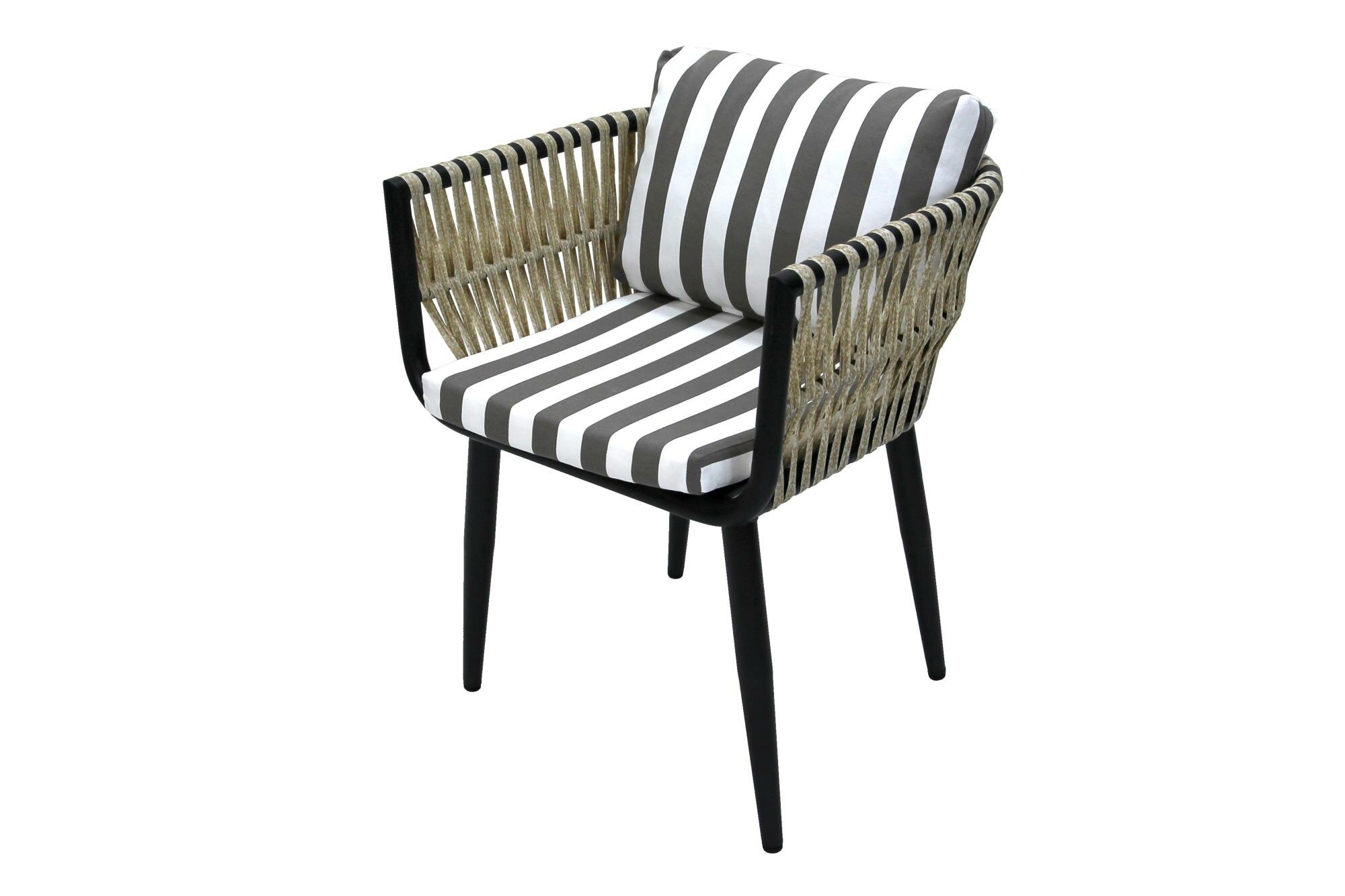 Кресло к набору Монте-Карло арт. MK-MT005-2024 (каркас черный, ротанг жемчуг, ткань полоска) (В)
