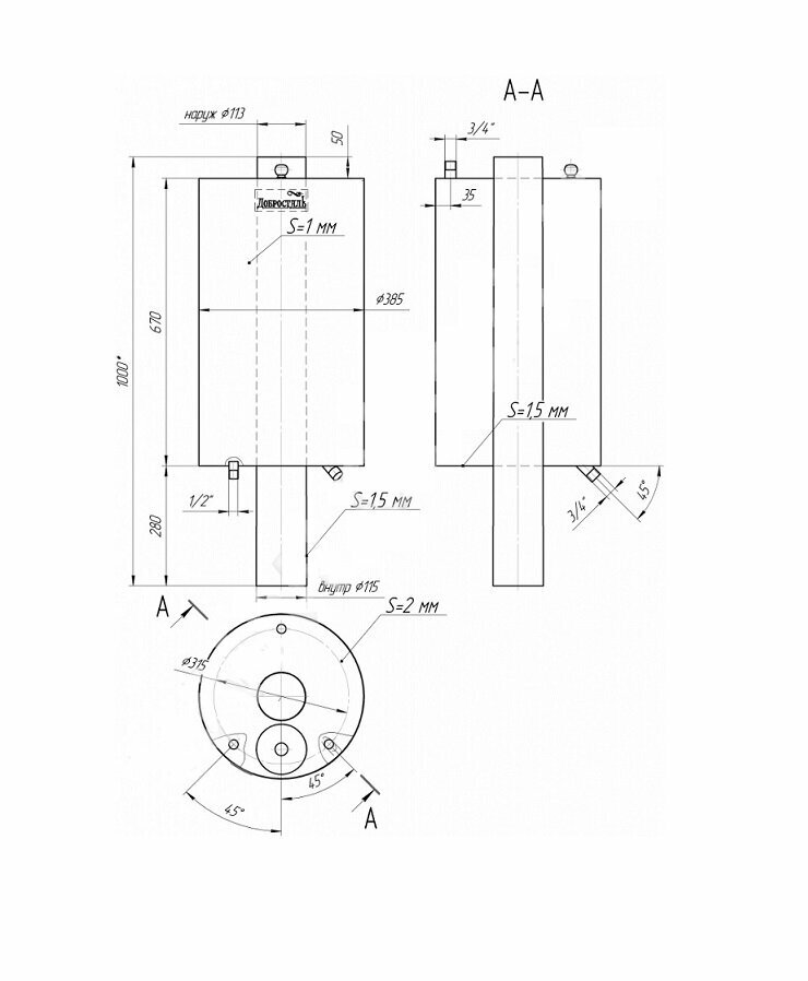 Отзывы на Бак для воды Добросталь 70 литров в баню, нержавейка на трубу 115мм