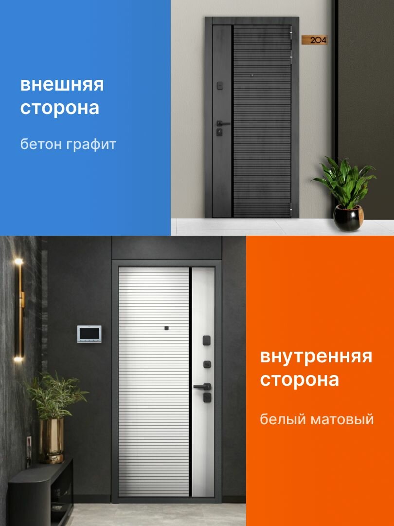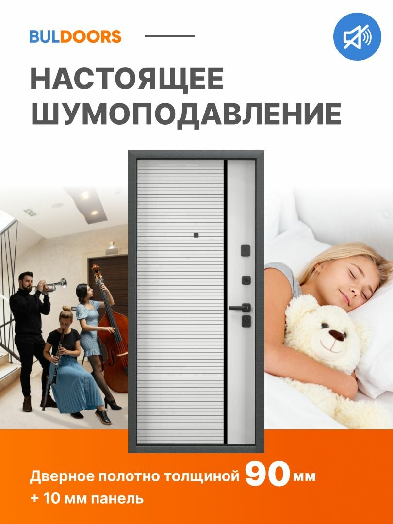 Дверь входная металлическая квартирная бульдорс 90 РP 2050x960 Правая, Бетон графит ФЛС-248чс Белый матовый ФЛС-248чс информация: