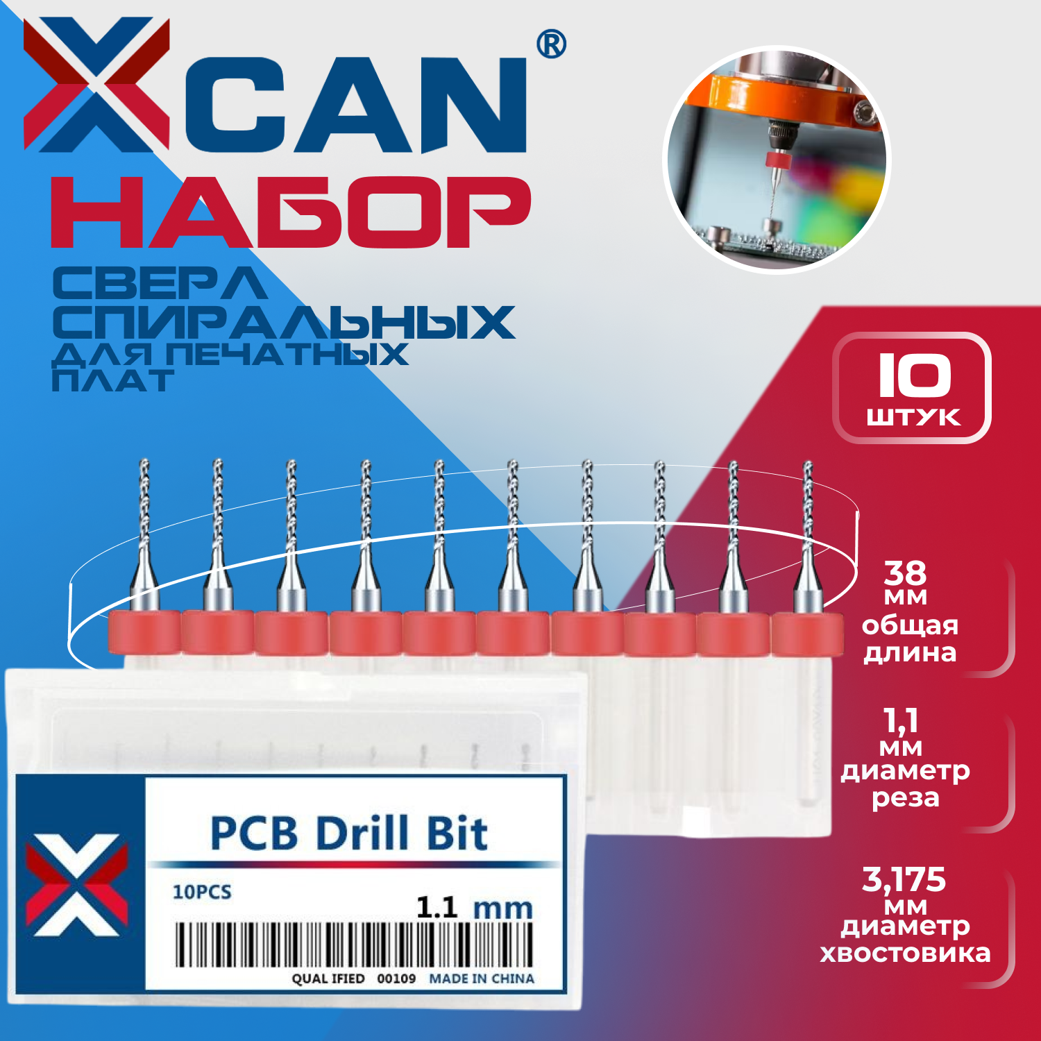 Набор сверл спиральных XCAN для печатных плат 1,1 мм, 10 шт. информация: