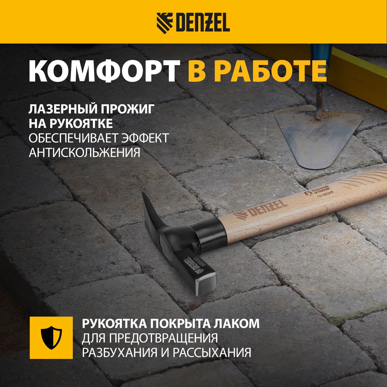 Молоток каменщика Denzel 600 г, буковая рукоятка, EFP, из высококачественной углеродистой стали 45, 10643 информация: