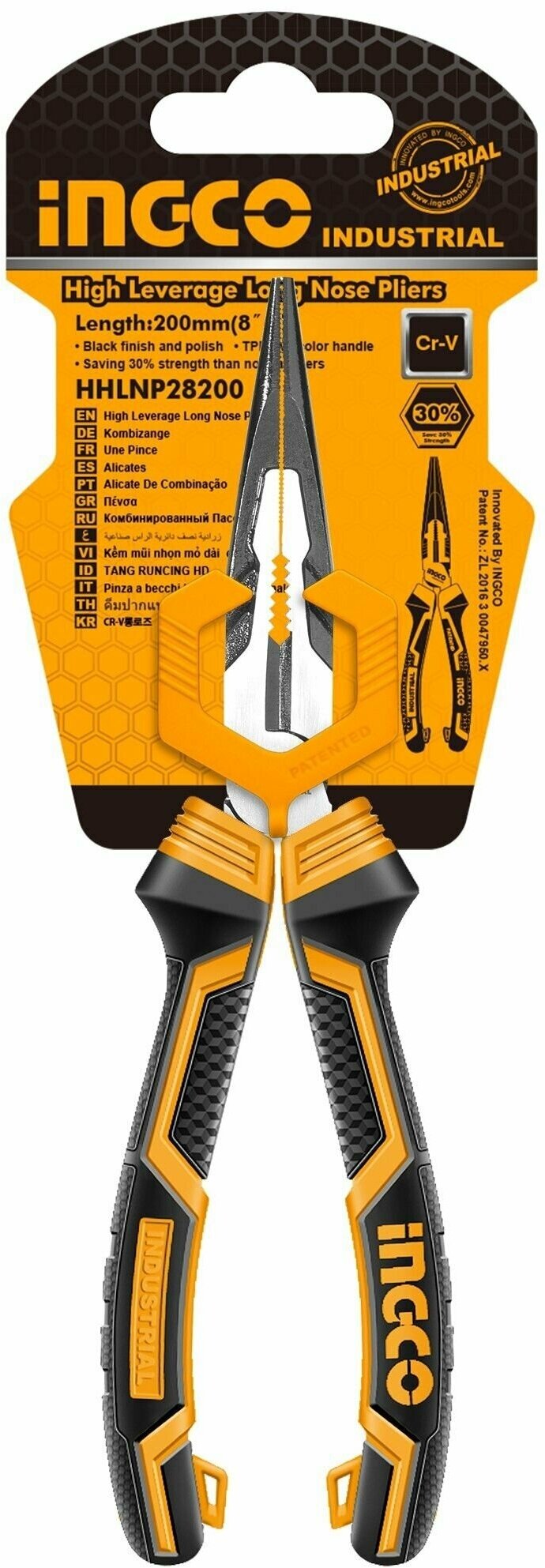 Тонкогубцы INGCO INDUSTRIAL HHLNP28200, на 30% сильнее, 200 мм информация: