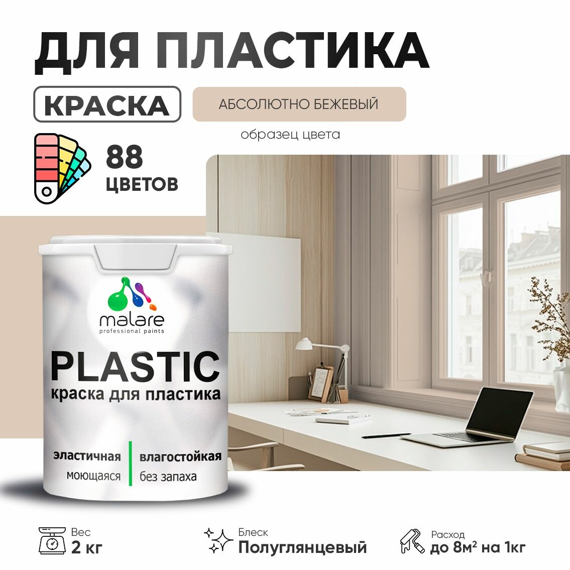 Резиновая краска для пластика Malare Plastic для пенопласта ПВХ сайдинга, для подоконников и откосов, быстросохнущая без запаха, полуглянцевая, абсолютный бежевый, 2 кг информация: