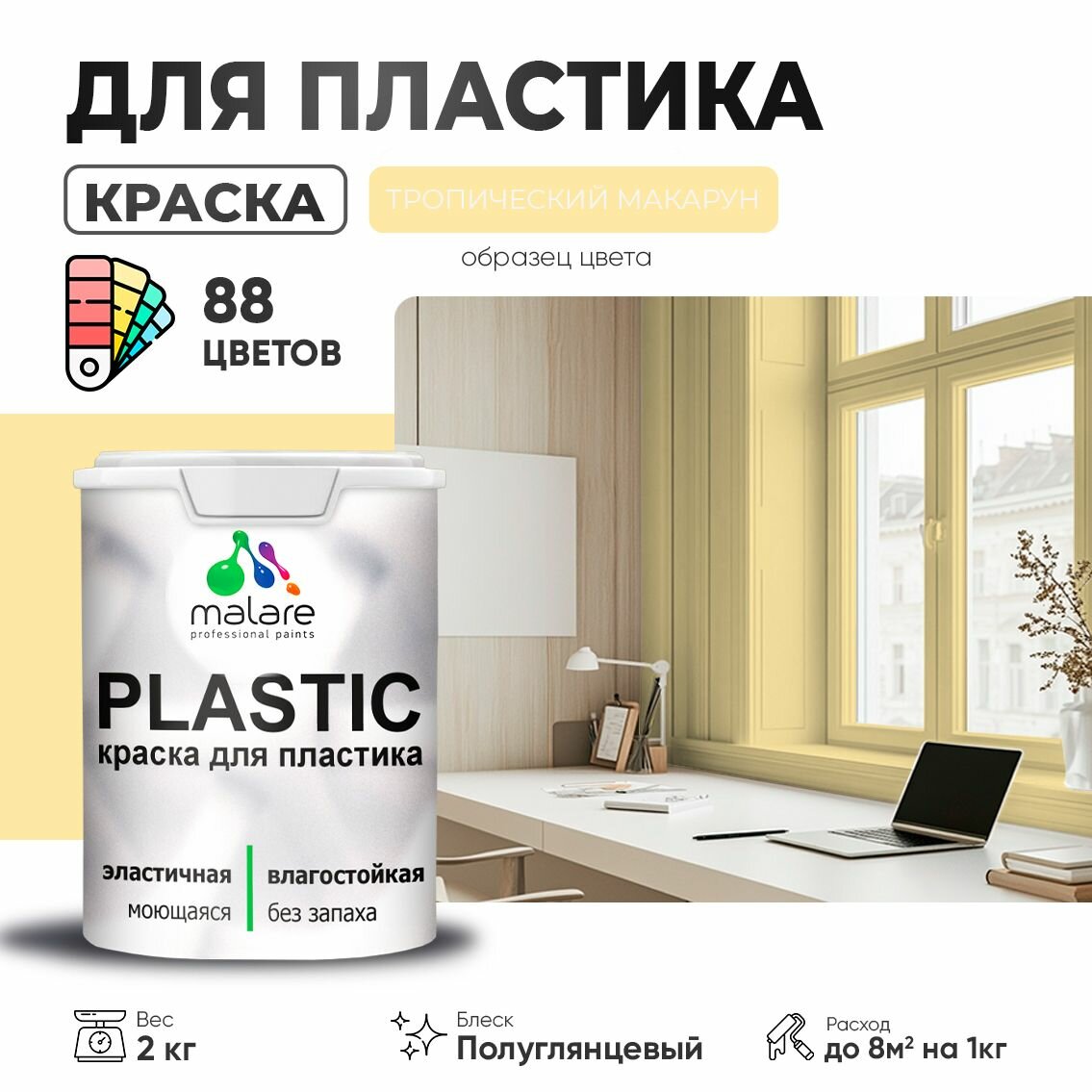 Резиновая краска для пластика Malare Plastic для пенопласта ПВХ сайдинга, для подоконников и откосов, быстросохнущая без запаха, полуглянцевая, тропический макарун, 2 кг информация: