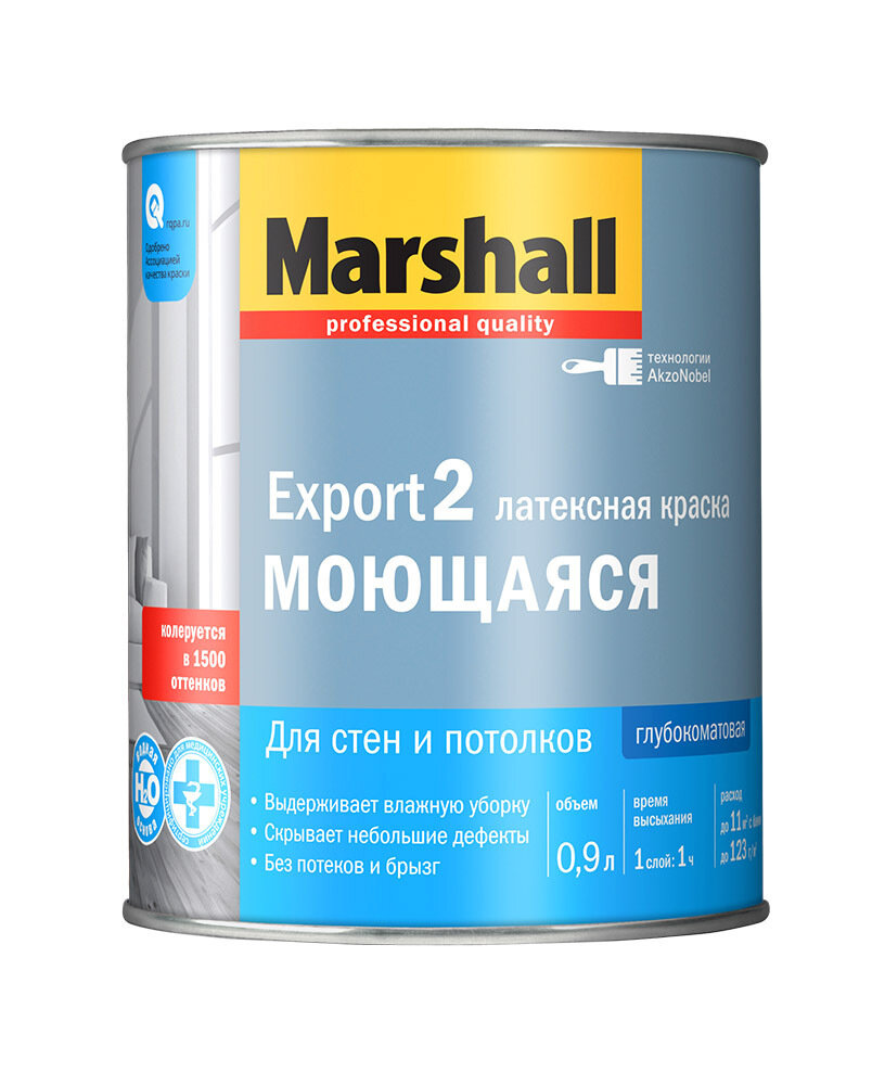 Краска для стен и потолков латексная Marshall Export-2 глубокоматовая база BW 0,9 л. информация: