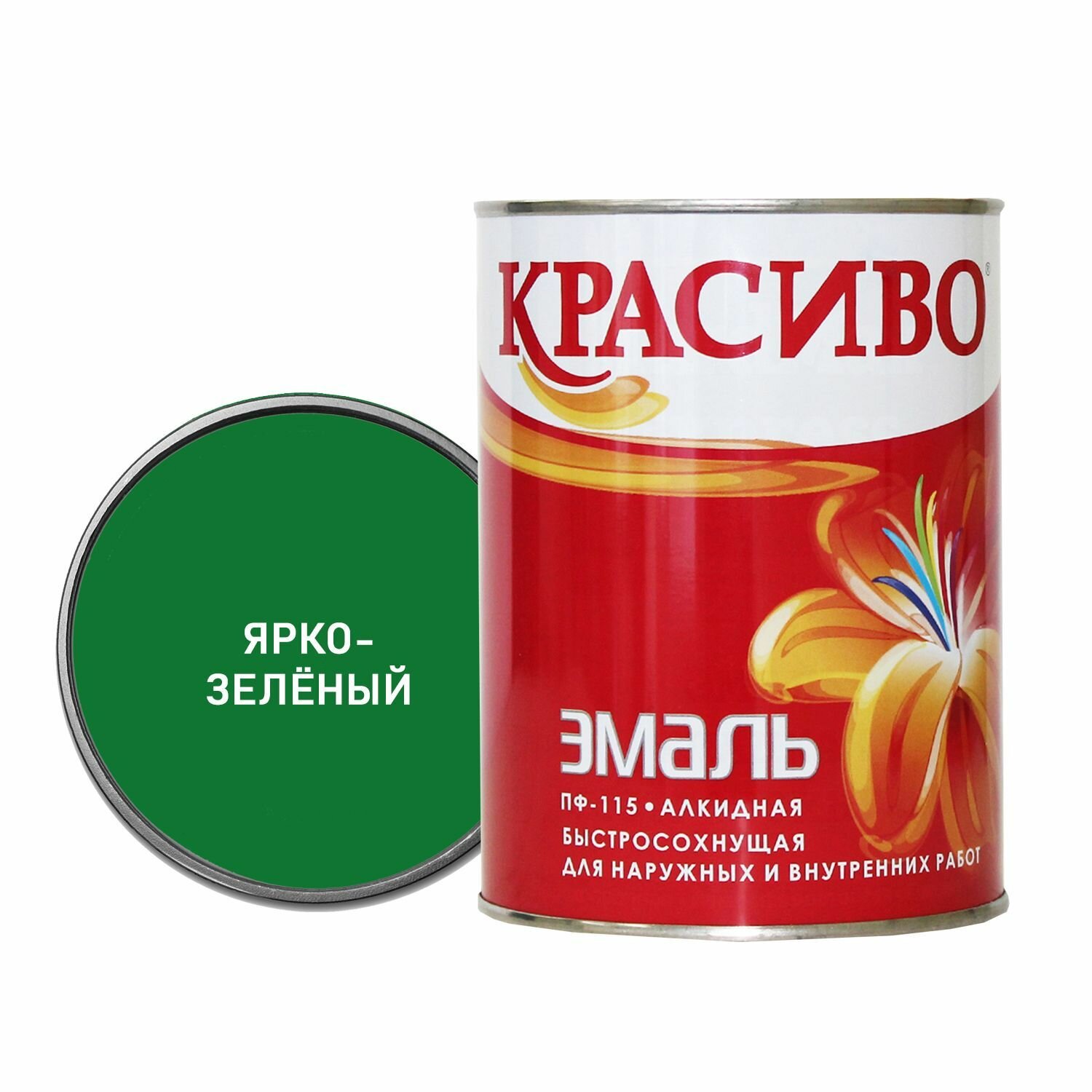 Красиво Эмаль ПФ-115 Ярко-зеленый 0,8 кг / краска для стен по металлу, по дереву информация: