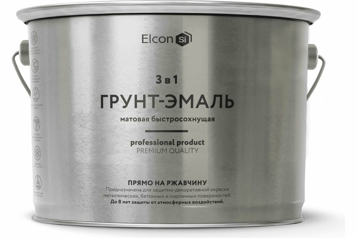 Грунт-эмаль по ржавчине Elcon 3 в 1, матовая, 10 кг, RAL 9023, графит 8 574 ₽