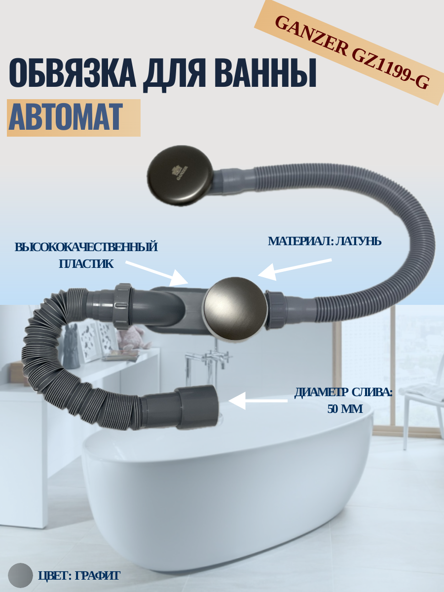 10 цен на Обвязка для ванны автомат GANZER GZ1199-G, цвет графит