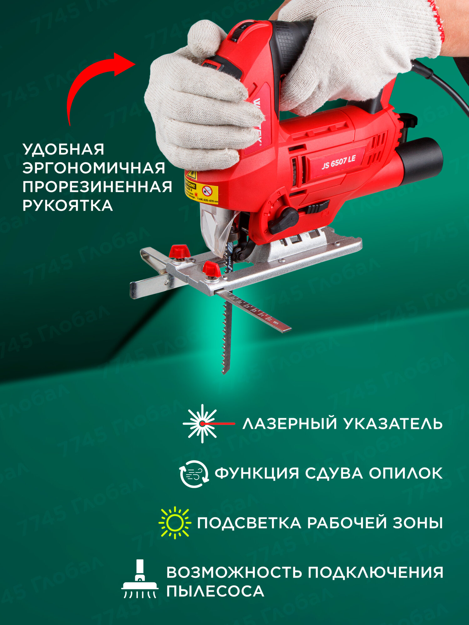 Лобзик электрический WORTEX JS 6507 LE электролобзик с лазером (1333579) информация: