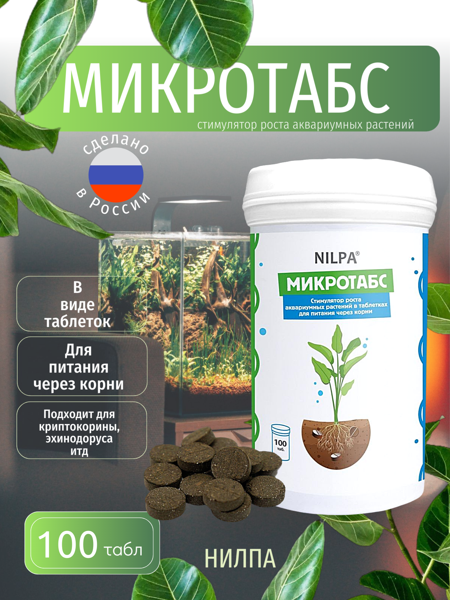 Удобрение Микротабс Нилпа, для аквариумных растений, 100 таблеток информация:
