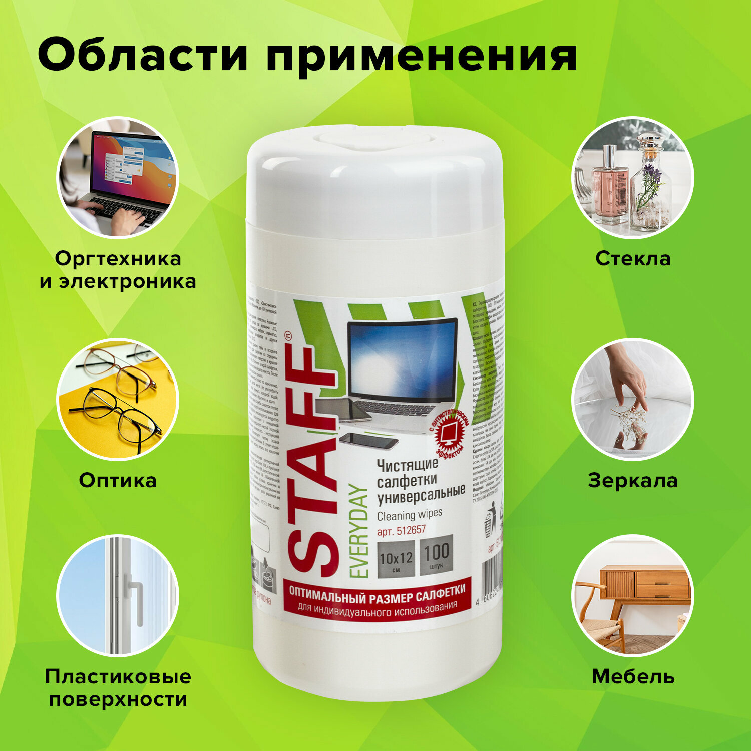 Салфетки для экранов, стекол и пластика универсальные Staff Everyday, туба 100 шт, влажные, 512657 информация: