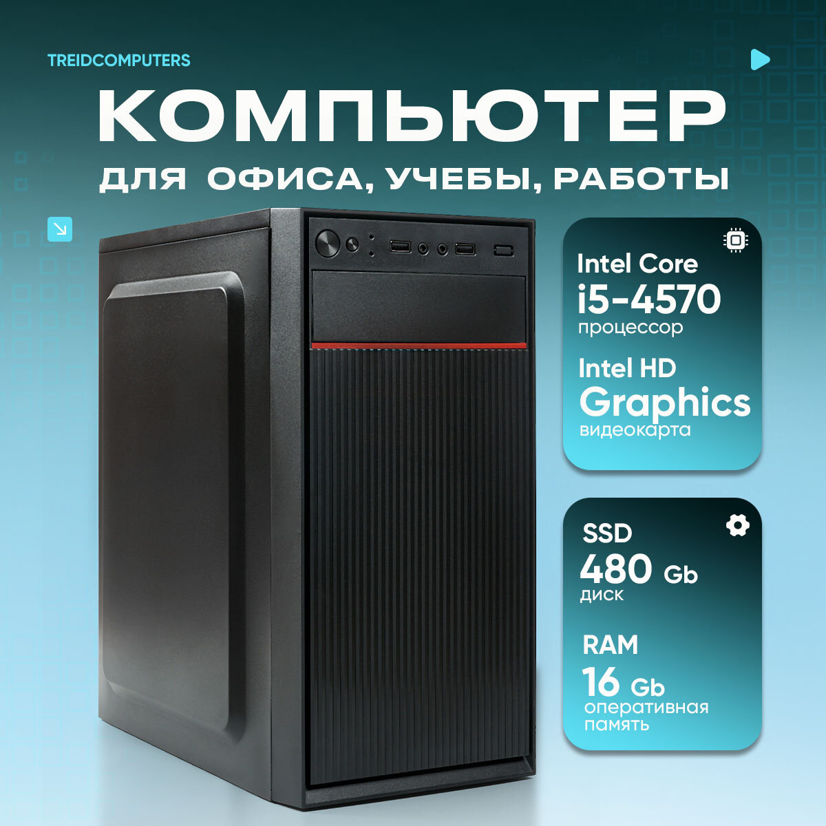 Системный блок TREIDCOMPUTERS Офисный Компьютер ПК (Intel Core i5 4570 (3.2 ГГц), RAM 16 ГБ DDR3, SSD 480 ГБ, Intel hd graphics) 21 240 ₽