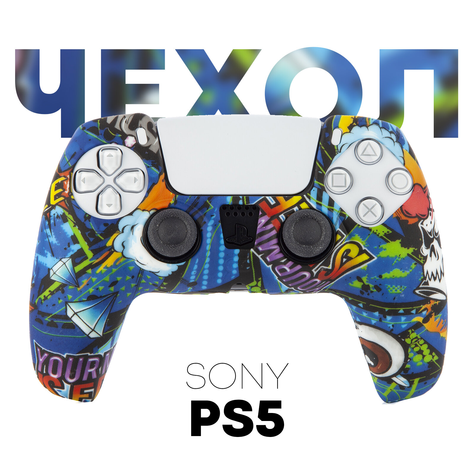 Защитный силиконовый чехол с рисунком для геймпада Sony PlayStation 5 (накладка для контроллера Сони Плэйстэйшн 5), граффити 2 450 ₽