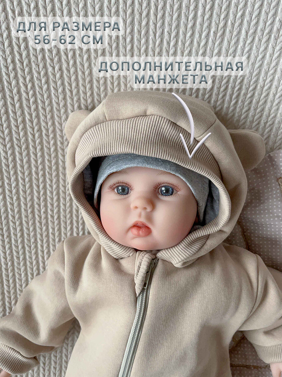 Комбинезон для новорожденных утепленный футер с начесом 62 см бежевый 1 990 ₽
