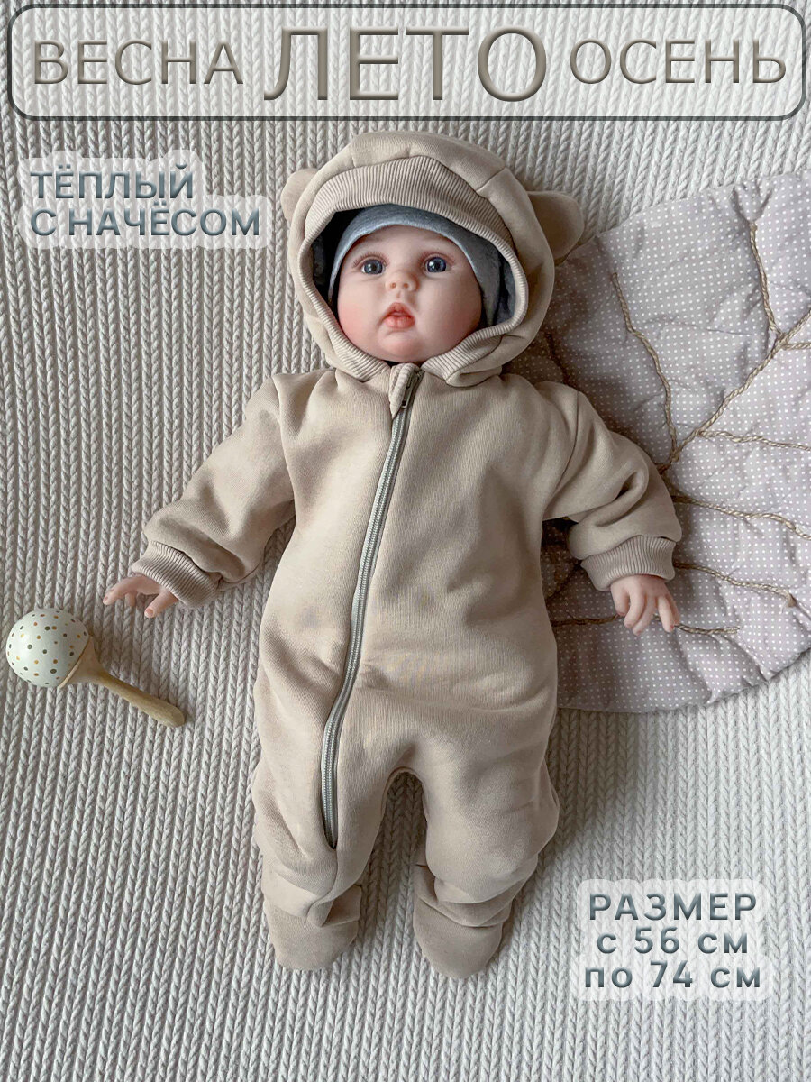 Комбинезон для новорожденных утепленный футер с начесом 68 см бежевый 2 090 ₽