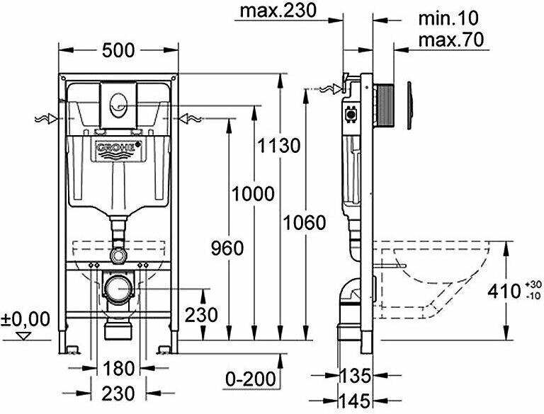 Унитаз с инсталляцией Weltwasser MARBERG 410 + SALZBACH 043 MT-GR + MAR 410 SE