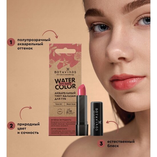Акваральный тинт-бальзам для губ Botavikos Пудровая роза, тон 2 информация: