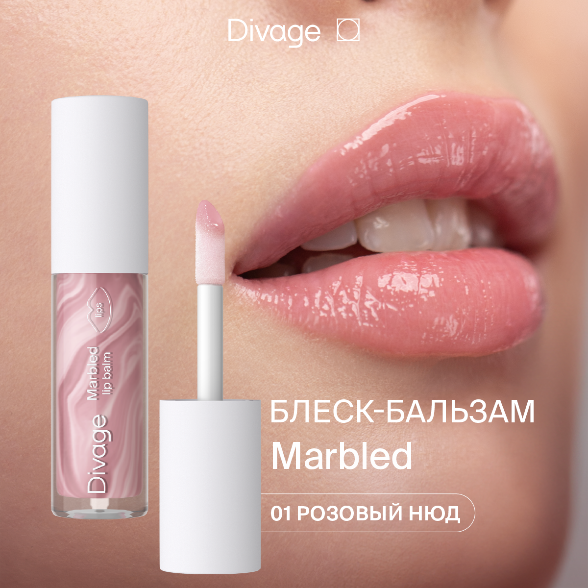 Divage Бальзам-блеск для губ Marbled Lip Balm, тон 01 розовый нюд 319 ₽