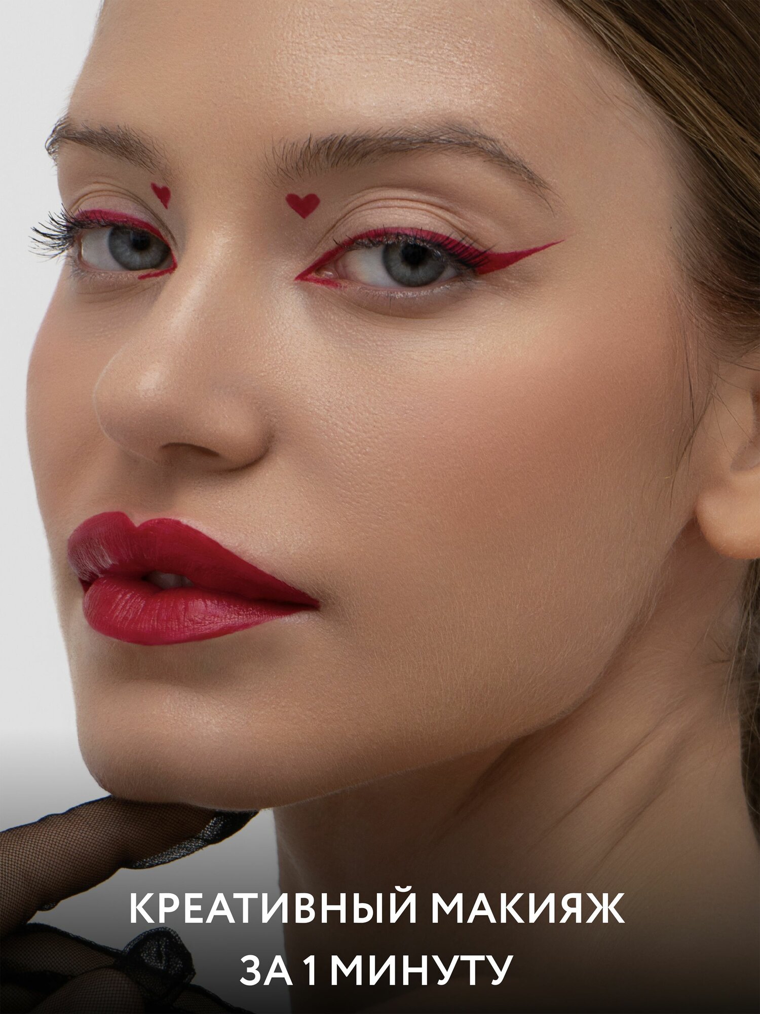Отзывы на MIAMITATS Лайнер + тату-штамп (2в1) Red Love, подводка фломастер для глаз + тату-штамп сердечко, красная