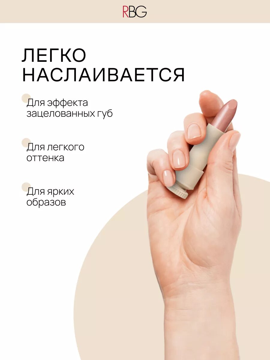 10 цен на Помада-бальзам RBG "Русский Нюд", тон 04, розово-коричневая, увлажняющий эффект.