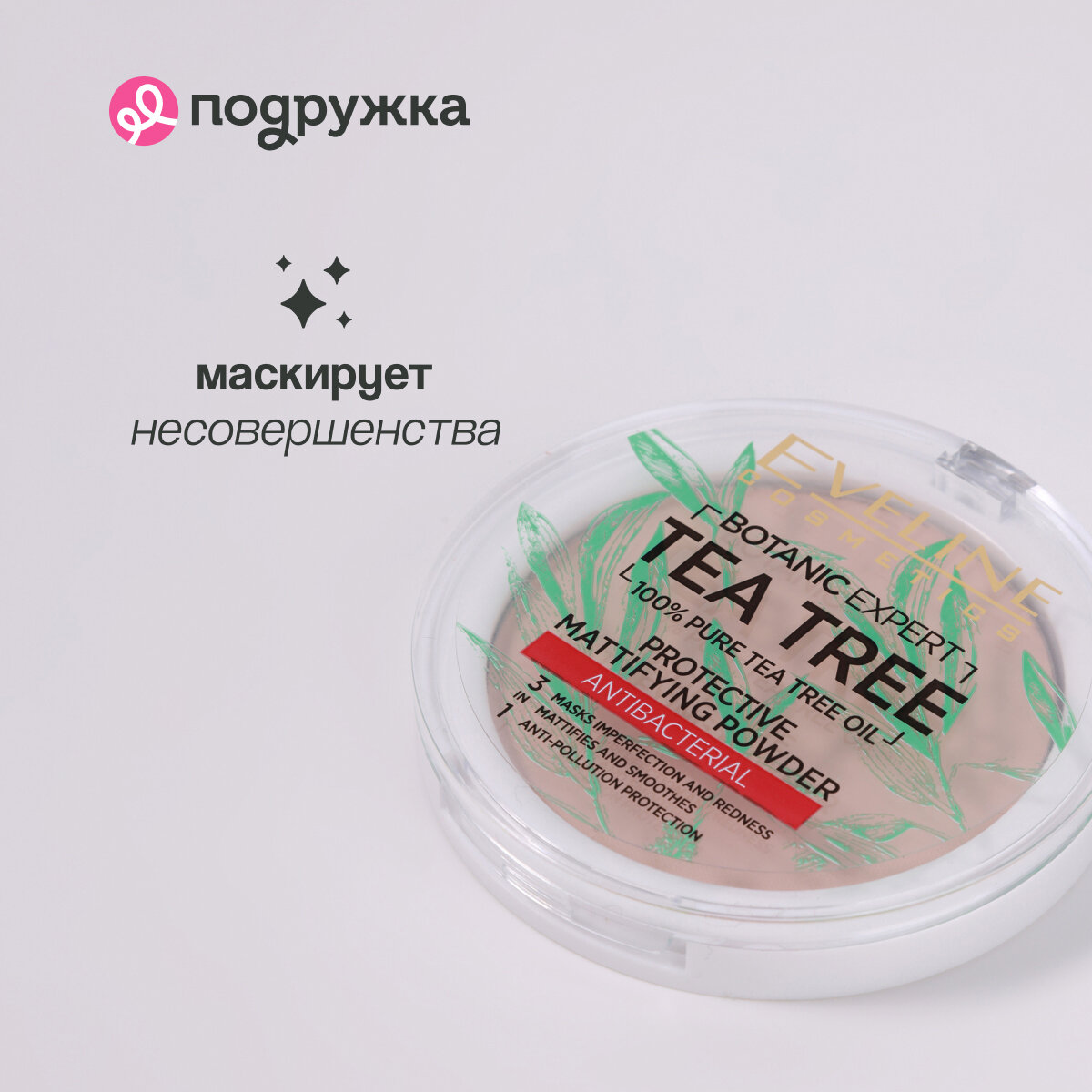 Отзывы на Пудра компактная для лица EVELINE BOTANIC EXPERT 3 в 1 антибактериальная матирующая тон 002 ivory