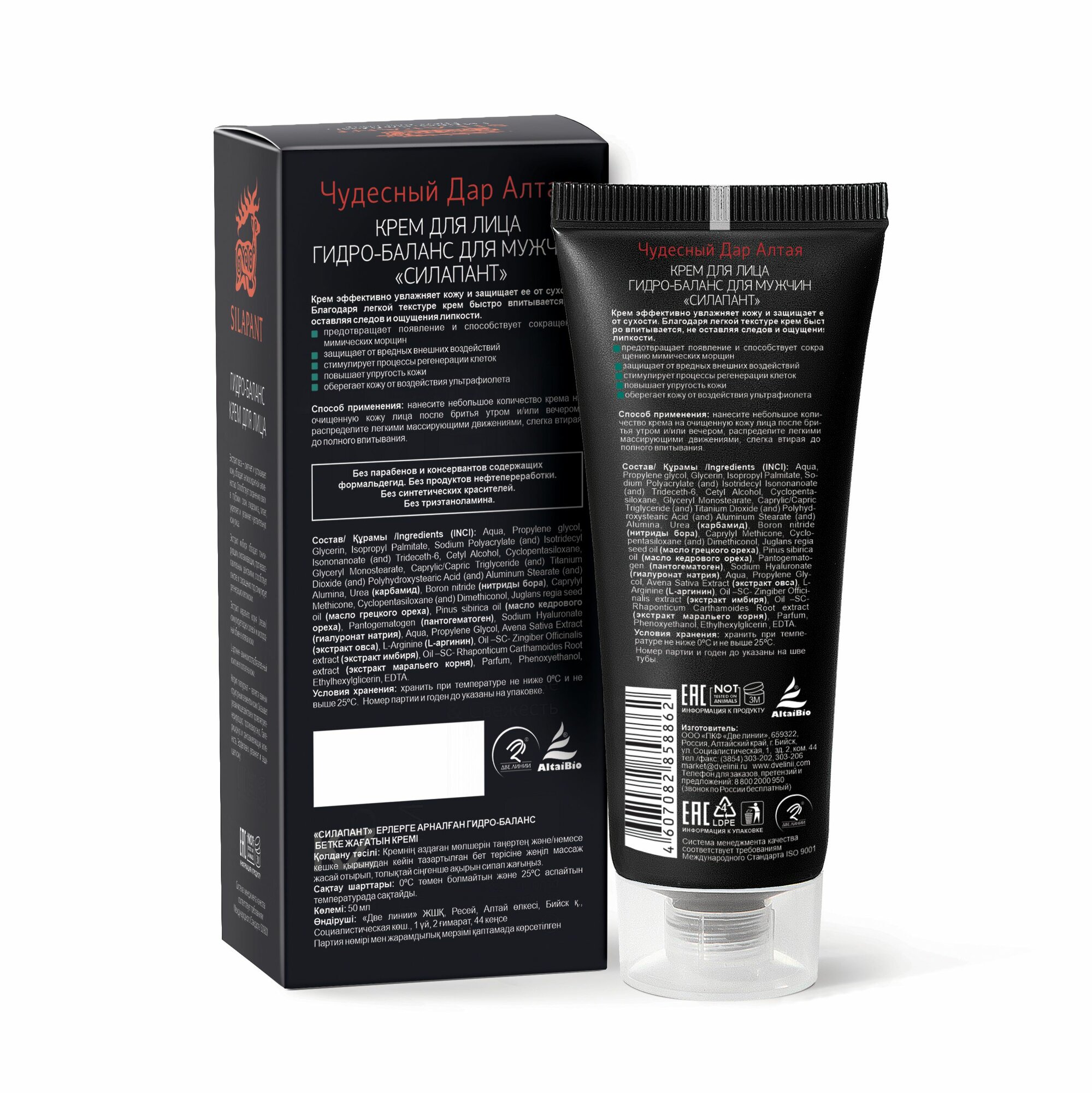 | Состав | гель для бритья: Д-пантенол / экстракты овса / тысячелистника / хвоща / аллантоин / ментол / пантогематоген. Крем для лица Гидро-баланс: Карбамид / нитриды бора / масло грецкого ореха / масло кедрового ореха / пантогематоген / гиалуронат натрия / экстракт овса / L-аргинин / экстракт имбиря / экстракт маральего корня. Крем-гель для век: Экстракт вахты трехлистной / карбамид / кофеин / гиалуронат натрия / экстракт каштана конского / витамин Е / масло грецкого ореха / масло кедрового ореха / пантогематоген |