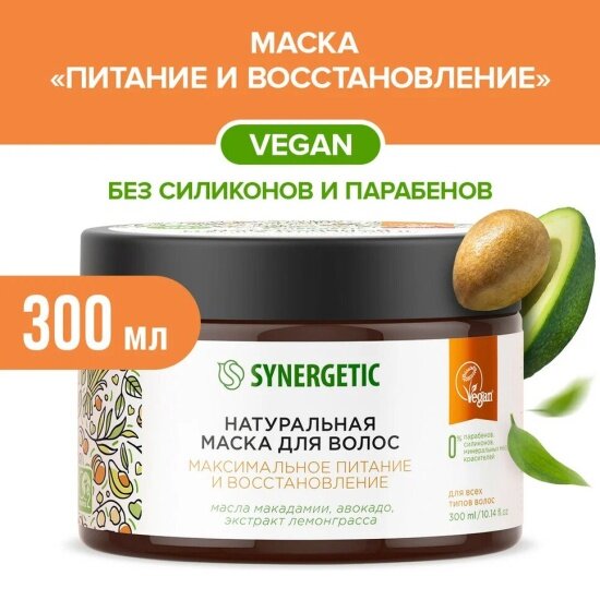 Натуральная маска для волос Synergetic Максимальное питание и восстановление, 300 мл информация: