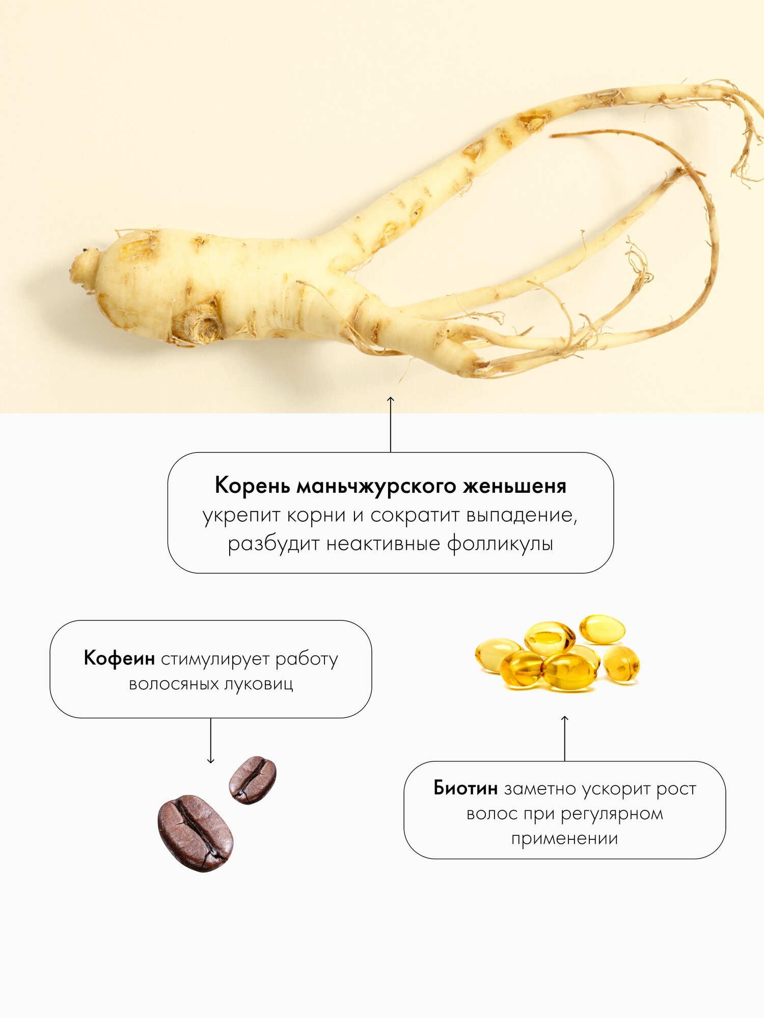| Состав | aqua with infusions of Organic Panax Ginseng Root Extract (органический экстракт корня маньчжурского женьшеня), Sophora Flavescens ExtractWH (экстракт софоры), Chamomilla Recutita Flower ExtractWH (экстракт ромашки), Viburnum Sargentii Flower/Leaf ExtractWH (экстракт калины), Crepis Sibirica ExtractWH (экстракт астры); Hydrogenated Starch Hydrolysate, Glycerin, Hydroxyethylcellulose, Lactic Acid, Salicylic Acid, Caffeine (кофеин), Biotin (биотин), Benzyl Alcohol, Benzoic Acid, Sorbic Acid, Citric Acid, Parfum. (WH)- Органические экстракты дикорастущих растений |