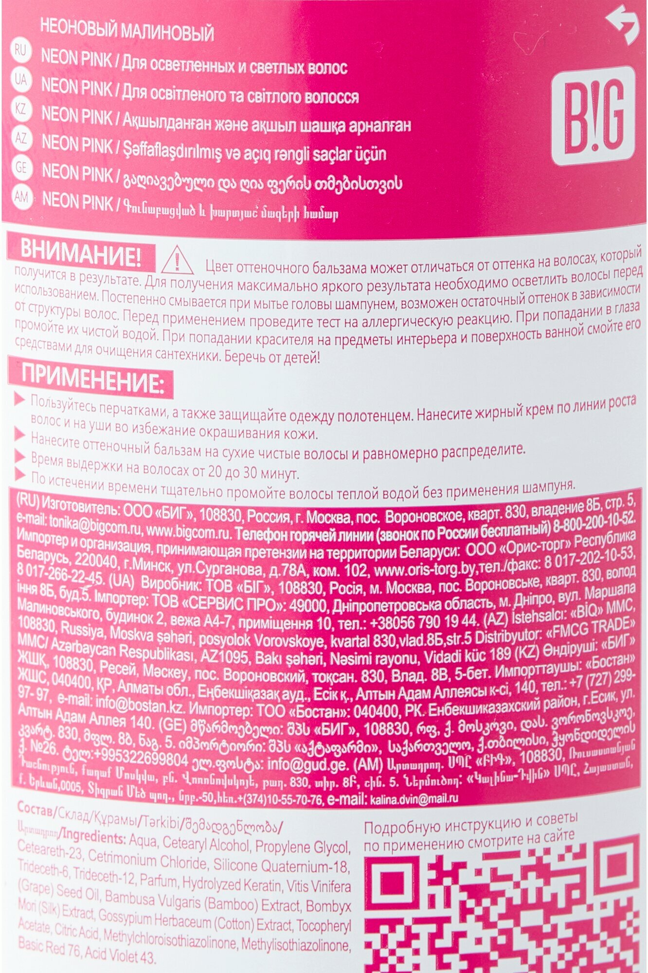 | Способ применения | пользуйтесь перчатками, защищайте одежду полотенцем. Нанесите жирный крем по линии роста волос и на уши во избежание окрашивания кожи. Нанесите оттеночный бальзам по всей длине волос и оставьте на 20 минут. По истечении времени промойте волосы теплой водой, пока вода не станет прозрачной |