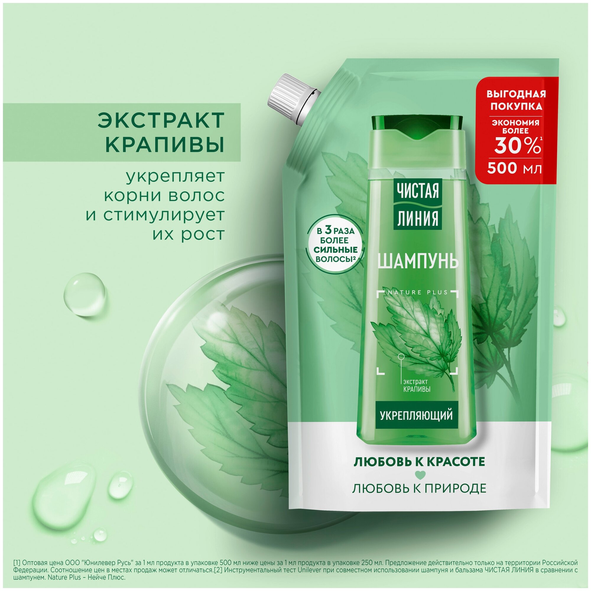 Чистая Линия шампунь укрепляющий сила и густота для всех типов волос с экстрактом крапивы, без силиконов 400 мл