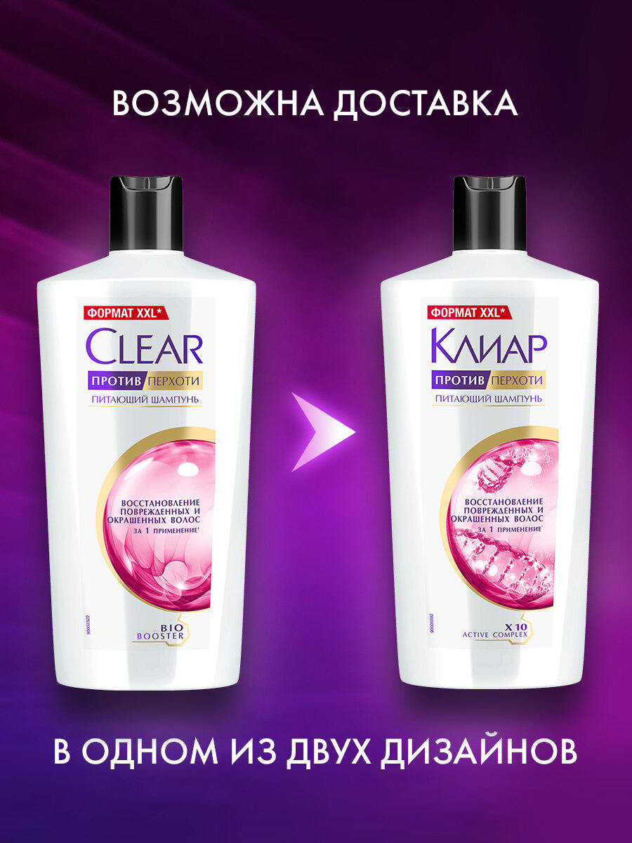 Шампунь для волос женский от перхоти Клиар Восстановление поврежденных и окрашенных волос, 650 мл информация: