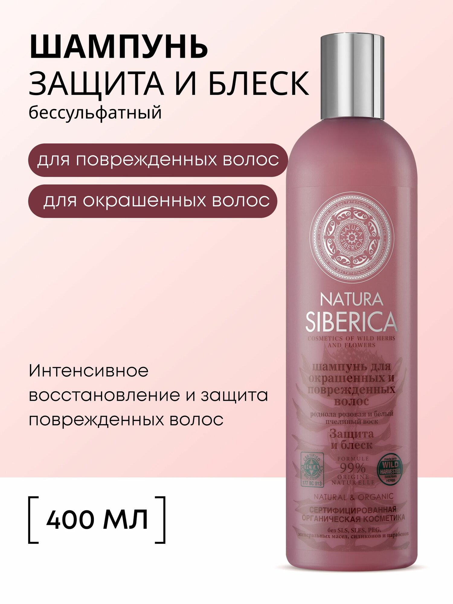 10 цен на Natura Siberica Защита цвета и блеск Бессульфатный шампунь для окрашенных и поврежденных волос восстанавливающий с протеинами 400 мл