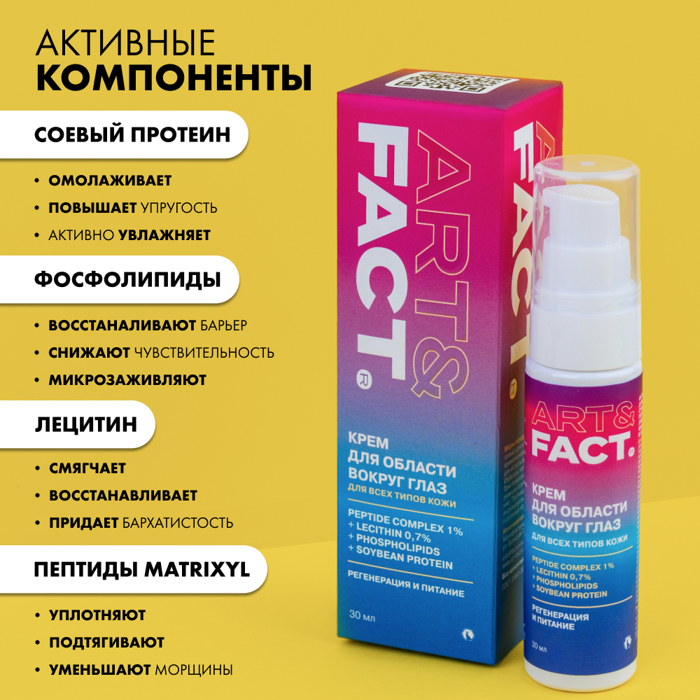 ART&FACT. / Антивозрастной крем для кожи вокруг глаз с мультикомплексом пептидов 1%, лецитином 0,7% фосфолипидами, 30 мл информация: