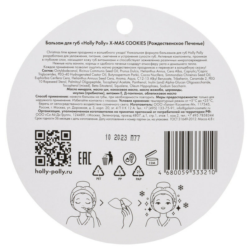 HOLLY POLLY Бальзам для губ Holly Polly X-mas Cookies Рождественское Печенье,4,8г информация: