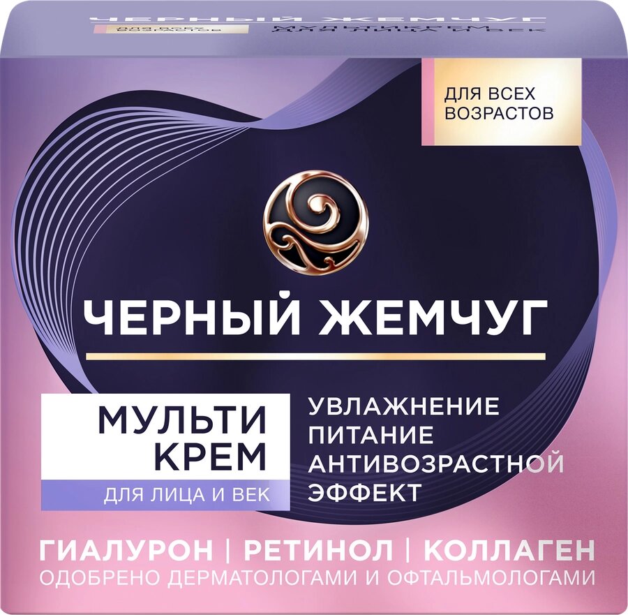Крем для лица и век черный жемчуг Мультикрем Увлажнение и питание, антивозрастной эффект, 46мл информация: