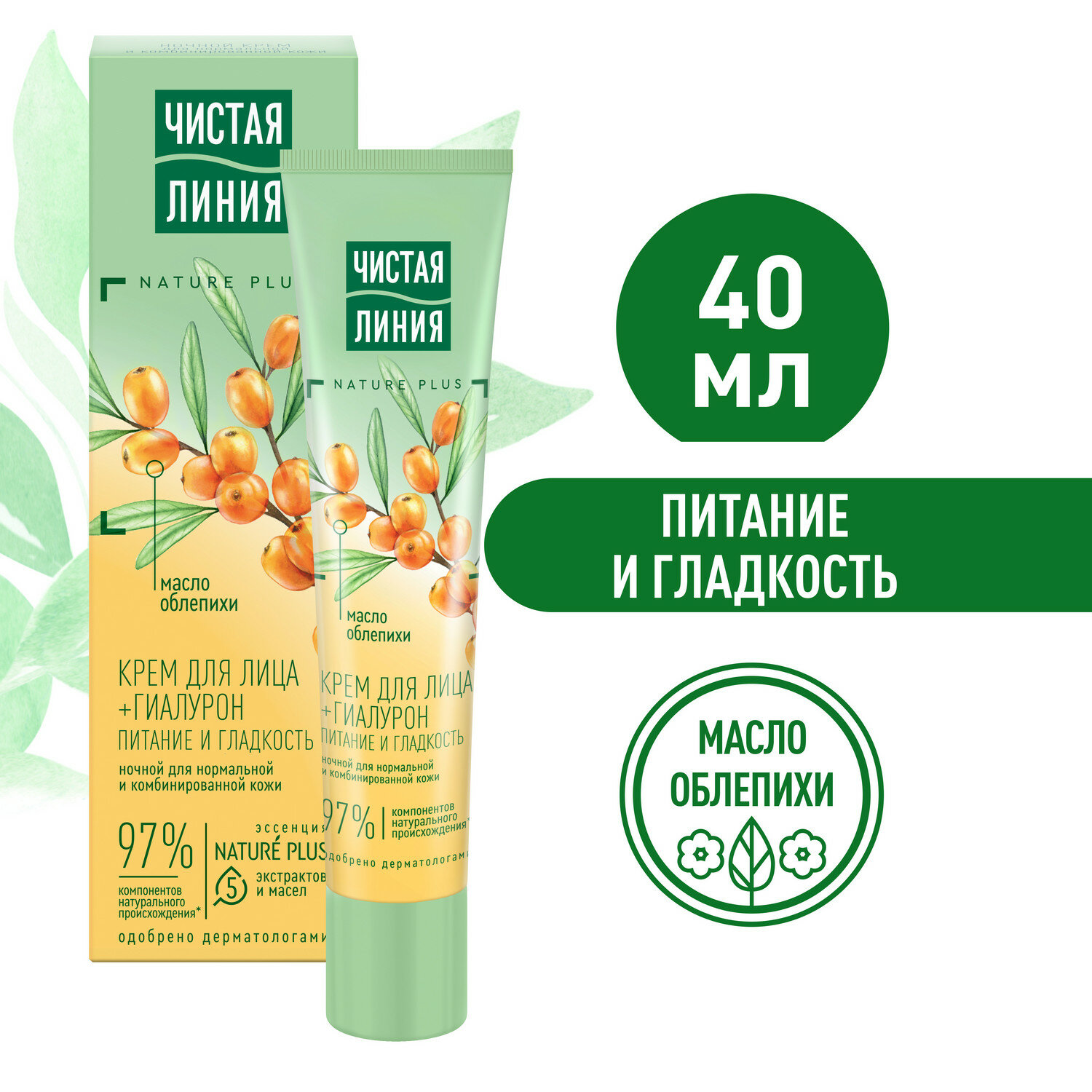 Чистая Линия ночной крем для лица Питание и гладкость с гиалуроном и маслом облепихи 40 мл информация:
