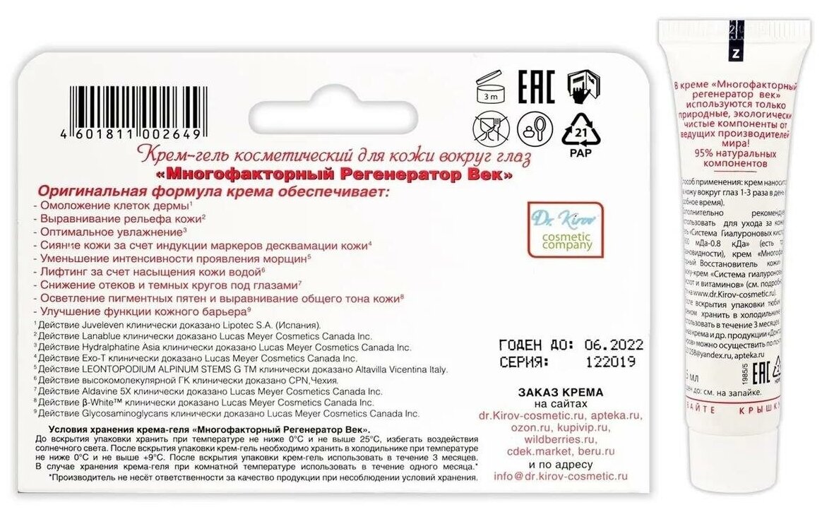 | Дополнительная информация | Наносите гель с отбеливающим пептидом капельно утром и вечером. Утром : нанесите крем гель "Тонус лимфодренаж" на лицо, включая область вокруг глаз через несколько минут после нанесения сыворотки. Вечером – нанесите крем МРВ на зону вокруг глаз через несколько минут после сыворотки мягкими массажными движениями. |