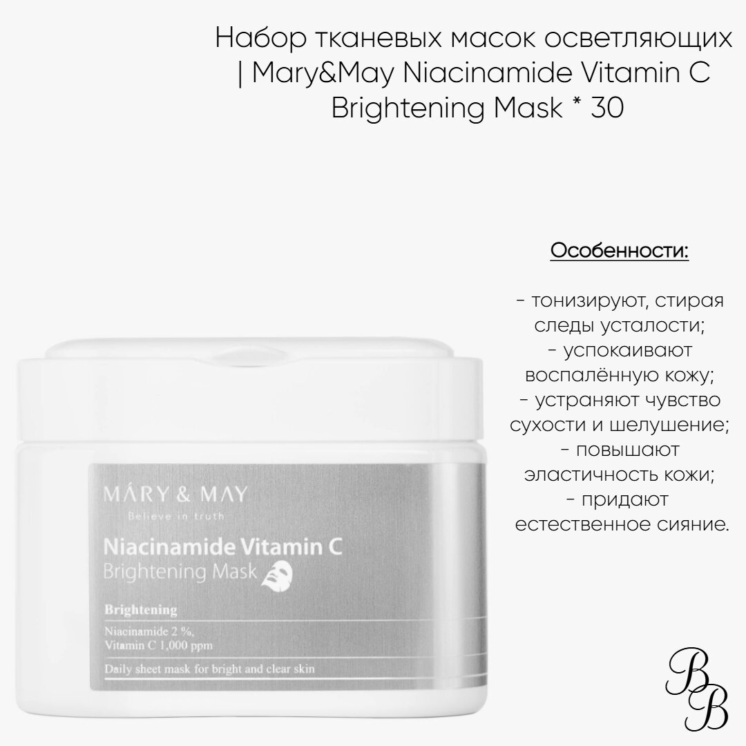 Набор тканевых масок осветляющих | Mary&May Niacinamide Vitamin C Brightening Mask * 30 информация: