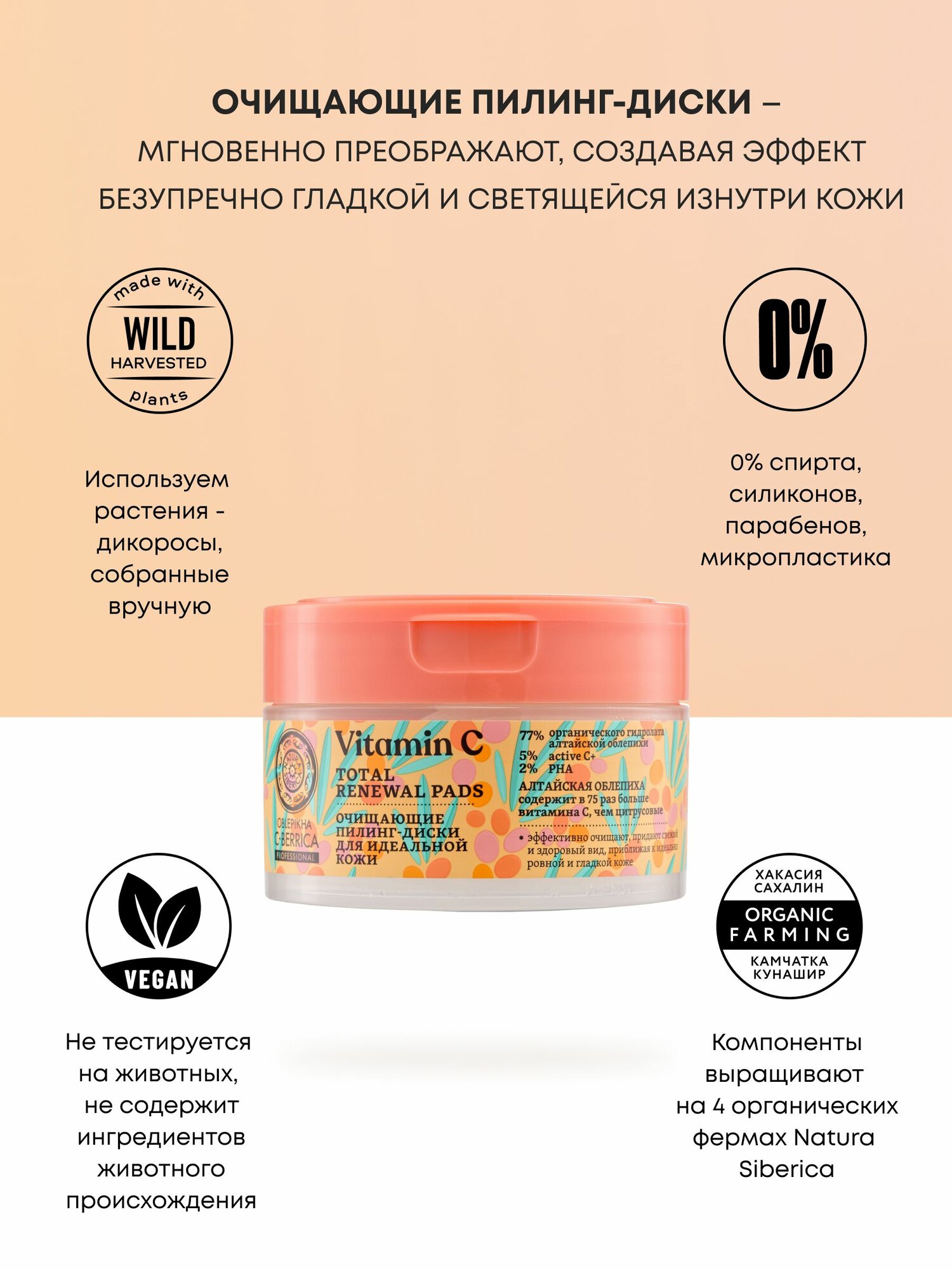 10 цен на Natura Siberica Oblepikha C-BERRICA Пилинг пэды для лица с глюконовой PHA кислотой и витамином С, очищающие диски 20 шт