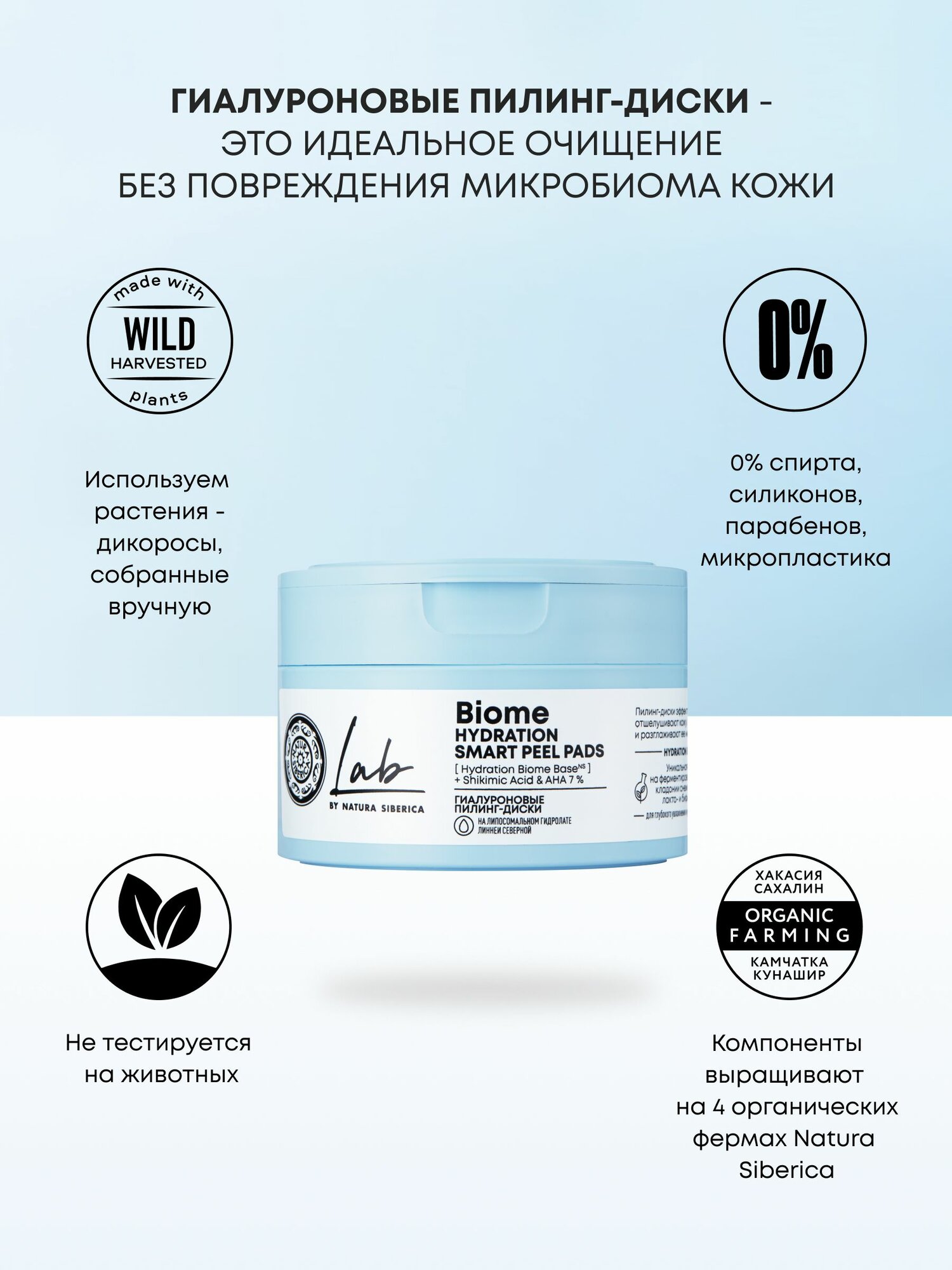10 цен на Natura Siberica Lab Biome Гиалуроновые пилинг пэды для лица с шикимовой, молочной, гликолевой AHA и салициловой BHA кислотами, увлажняющие очищающие диски 20 шт