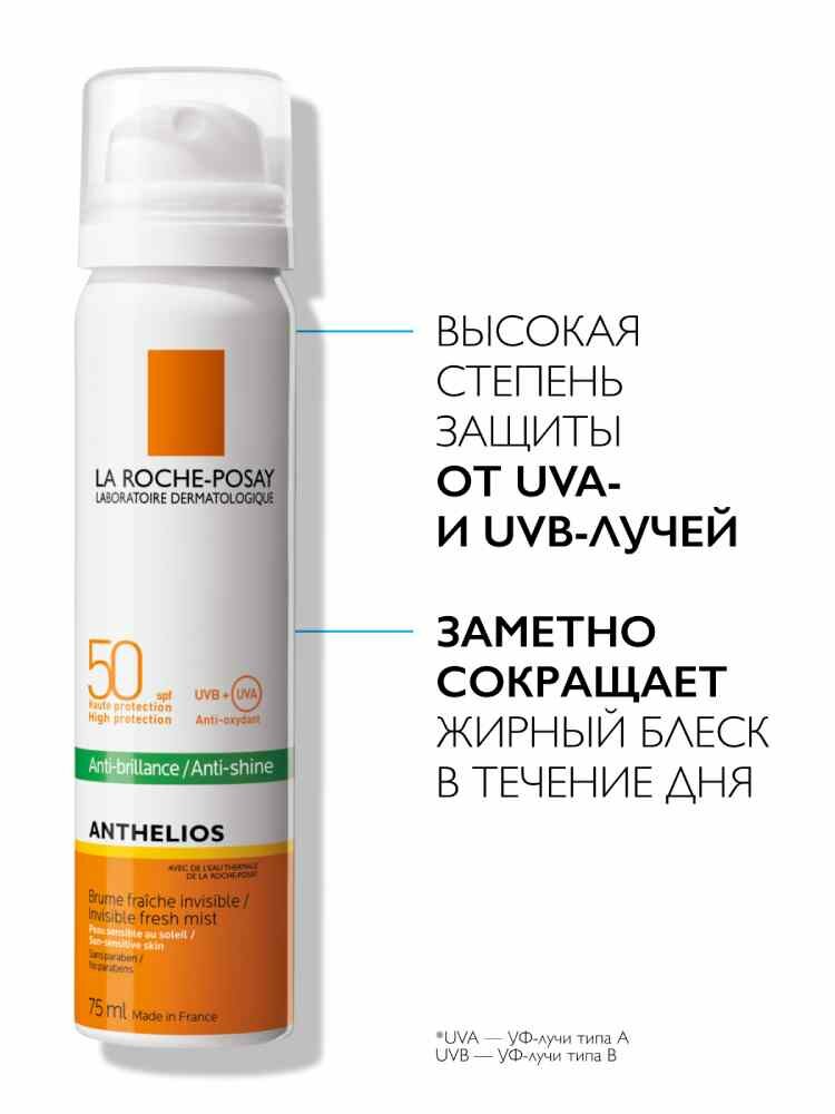 Спрей-вуаль солнцезащитный для лица матирующий SPF50 Anthelios La Roche Posay/Ля рош позе фл. 75мл (M9165720)